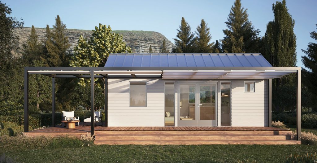 It's a 260 square foot modular unit built in a factory and shipped to your chosen location and placed on a permanent foundation. It's fire-resistant and eco-conscious. Best of all, the prefab is approved for permits! That's right this Tiny Home is fully legal! Learn more here.
